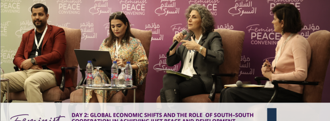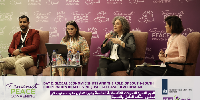 November 15-17, 2025. Dr Yara Shaban, Head of the Human Security and Social Justice Division, moderated a panel discussion on feminist recovery pathways at the Fifth High-Level Convening on Feminist Peace, organised by Peace Track Initiative. The panel featured Dr Salma Al-Nims, Dr Amal Mohammed Al-Malki, and Dr Haitham Jawas, who discussed alternative development models, feminist knowledge production, and challenges and opportunities for conflict-affected countries to strengthen security and cross-regional cooperation.